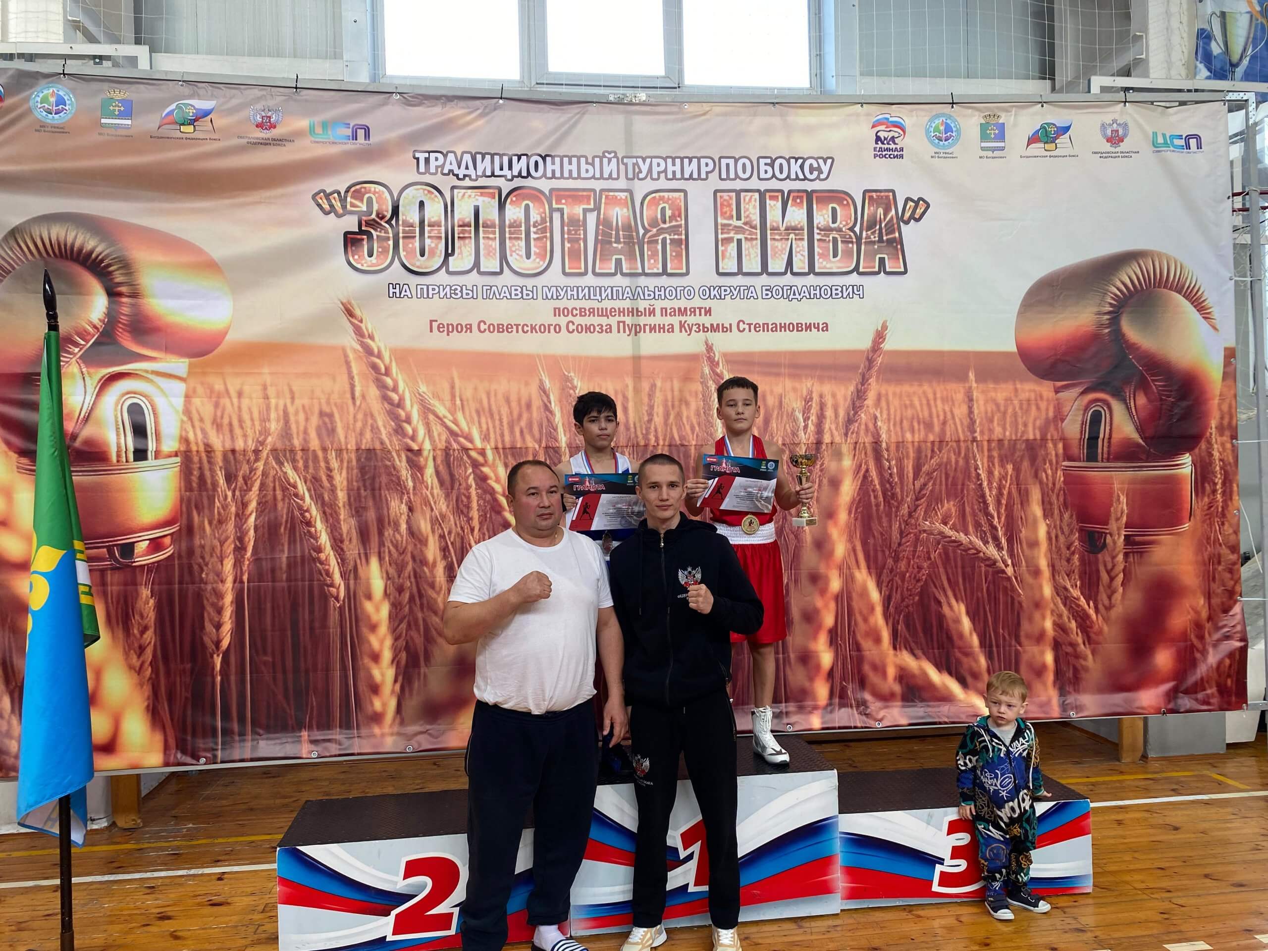 Итоги соревнований «Золотая Нива»С 6 по 9 ноября в городе Богданович провели турнир по боксу «Золотая Нива». Он был посвящен Герою Советского Союза Пургину Кузьме Степановичу. Участвовали ребята разных возрастов со всей области.Наши спортсмены под руководством Ким Грома Евгеньевича показали хорошие результаты. Второе место занял Абилов Туран (в возрастной категории 12 лет). Первое место занял Абилов Миран (возрастная категория 10 лет).Поздравляем юных спортсменов с успехами. Хочется пожелать им новых побед и высоких результатов на других турнирах.