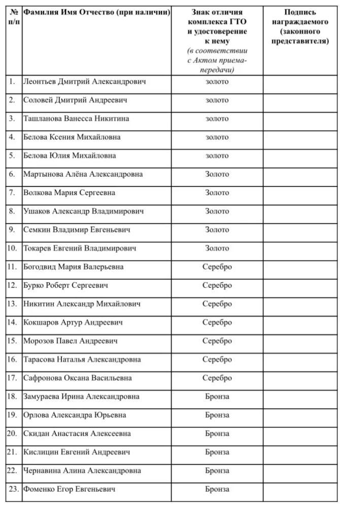 Торжественная церемония награждения знаками отличия Всероссийского физкультурно-спортивного комплекса «Готов к труду и обороне»Уважаемые участники Всероссийского физкультурно-спортивного комплекса «Готов к труду и обороне», информируем вас о том, что процедура вручения заслуженных вами знаков отличия состоится 14 февраля 2026 года.Мероприятие пройдет в официальном формате, в рамках которого всем участникам будут вручены знаки отличия за успешное выполнение нормативов программы ГТО.Место проведения церемонии – “Лыжная база” ул. Зеленый мыс 38Начало мероприятия запланировано на 12 часов дня, предварительная регистрация участников начнётся в холле учреждения в 11 часов 30 минут. Просим учесть, что получение знака отличия возможно исключительно при наличии предварительной регистрации; в случае отсутствия таковой выдача знака будет возможна лишь в городе Екатеринбурге.Дополнительную информацию вы можете получить по контактным телефонам: 8 (34345) 33–58–0, а также мобильному номеру 8–922–031–40–83.Полный список лиц, подлежащих награждению, прилагается